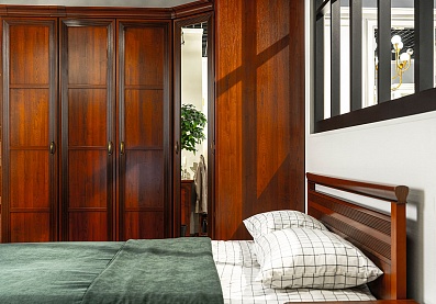 - Для хранения в спальне есть четыре удобных шкафа, один из которых с зеркалом. Благодаря этому вы можете увидеть свой образ сразу после переодевания, не выходя в ванную или коридор;